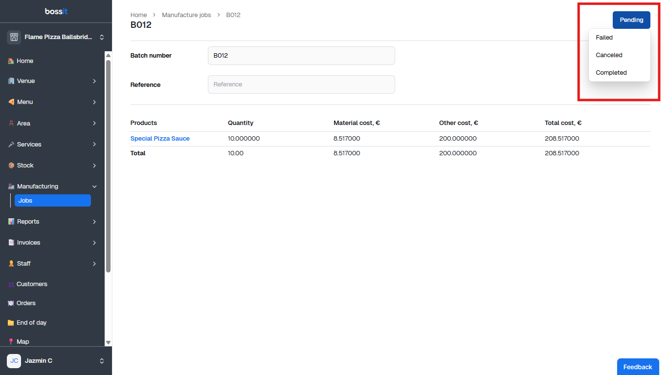See [manufacturing-jobs-statuses](https://docs.bossithq.com/manufacturing/manufacturing-jobs/manufacturing-jobs-statuses "mention") for details.